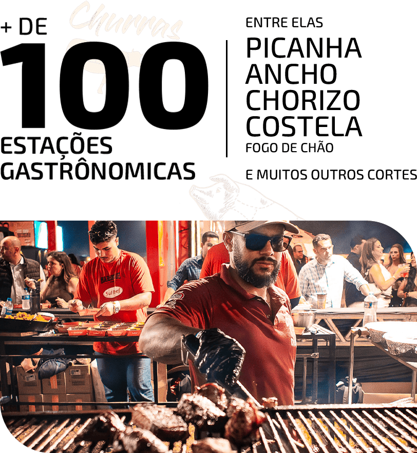 O festival conta com mais de 100 estações de churrasco, com buffet completo e diferenciado, muito além do padrão.